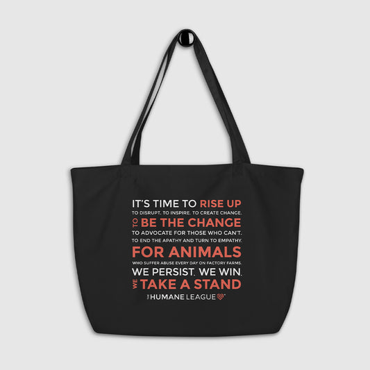 Snag our official merchandise! Every single thing you buy supports our shared work to end the abuse of animals raised for food. So treat your friends and family to something special—for the animals.